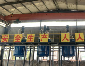 公司配置全新反應釜 10 臺,膠水生產設備、跑道底料生產設備、跑道面料生產設備等,擁有全自動化上料系統,設備精良,生產工藝先進,生產管理標準化,年生產能力高達 30000 噸。