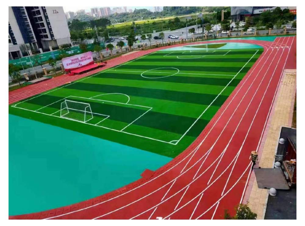 成功研發多層結構的全塑型自結紋跑道,鋪裝了潼南中學運動場, 場地品質獲得多方贊美。